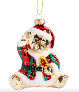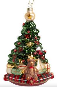 J’ai ainsi mêlé des boules plus traditionnelles, en velours ou aux motifs tartan, à des suspensions en verre (mes préférées) aux formes plus singulières. Cette année, j’ai eu envie de sortir du « tout-boule » pour intégrer quelques pièces figuratives : de petits nounours, des trains, des lanternes à LED, des cadres photos, et d’autres détails délicatement choisis, qui évoquent l’enfance et les Noëls d’autrefois, sans jamais tomber dans l’excès.